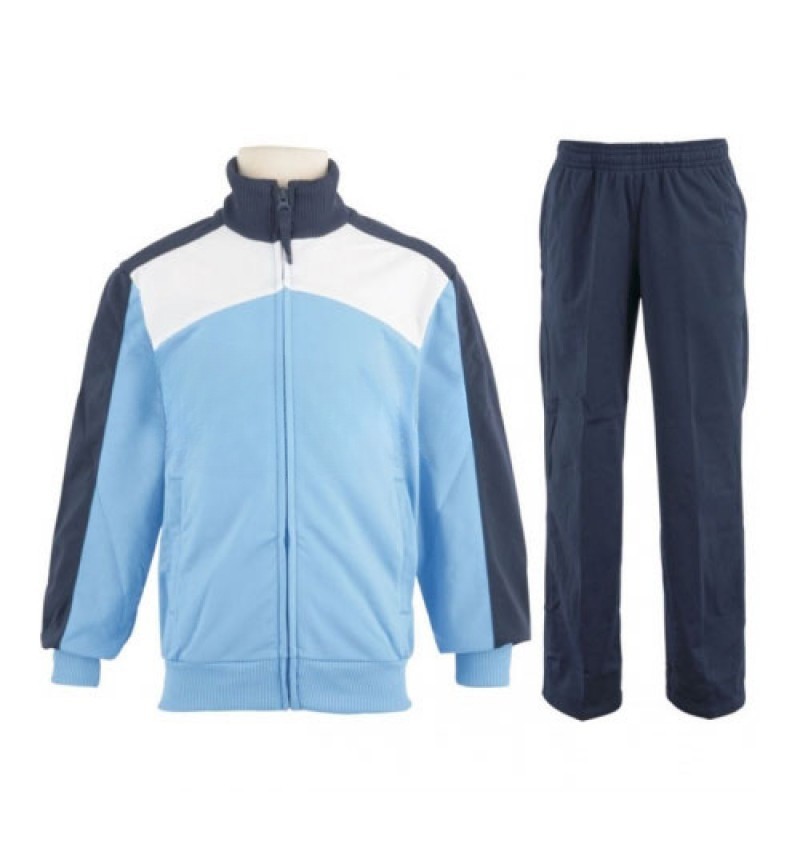 Track Suit is made from 100% polyester. The top features strong zippers, cuffs and jacket bottom are ribbed for a secure traditional athletic track suit fit. The pants feature an elastic waist, with d..
