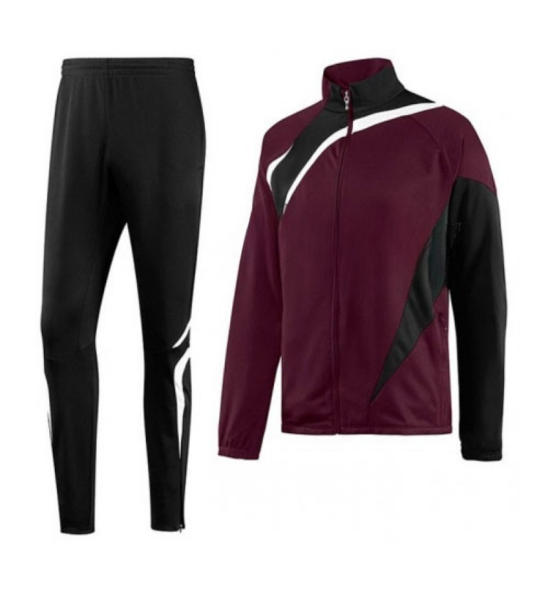 Track Suit is made from 100% polyester. The top features strong zippers, cuffs and jacket bottom are ribbed for a secure traditional athletic track suit fit. The pants feature an elastic waist, with d..